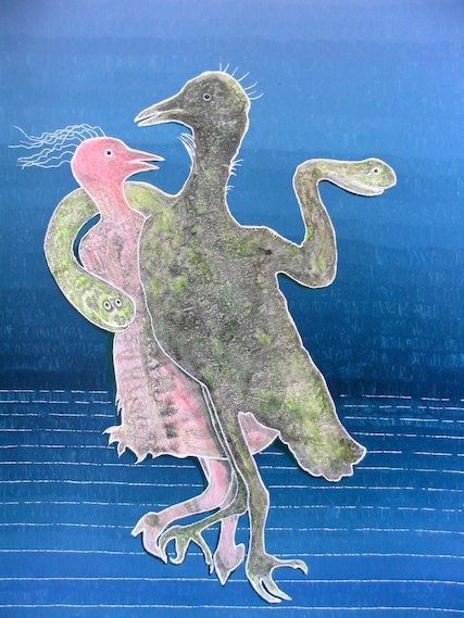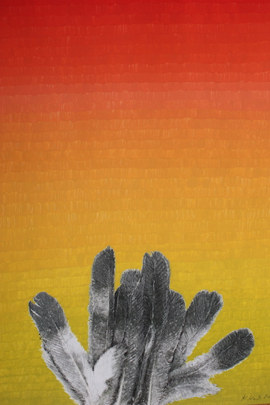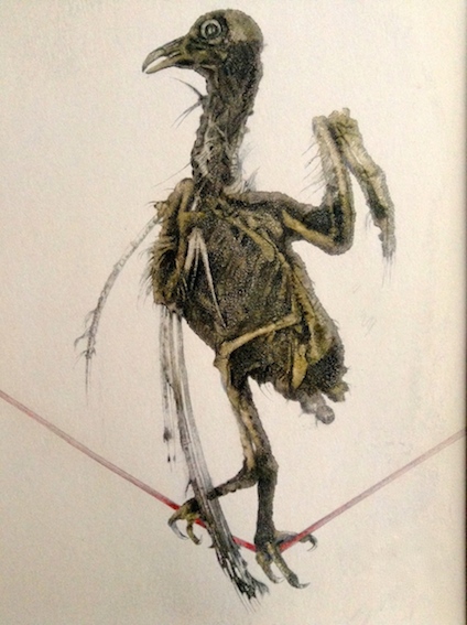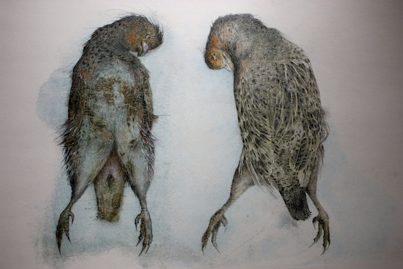 (50 x 70 cm Karton, Material und Bearbeitung: Tierkadaver, Federn,