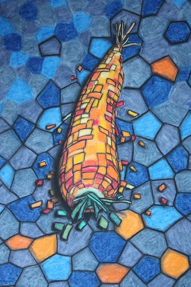 Fotos, Skalpelle, Gravurnadeln, Acrylfarbe, Aquarellstifte, Graphit)