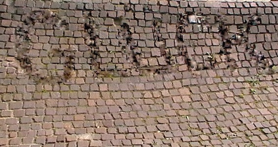 Menschen auf der Straße, die niemand je für glücklich halten würde, und